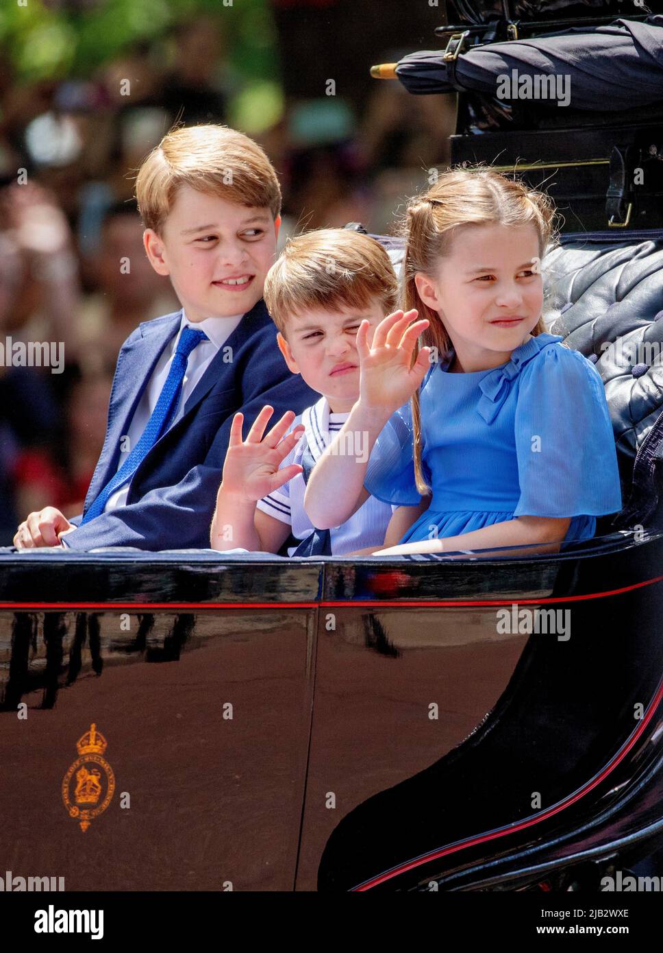 Prince George Princess Charlotte And Prince Louis At The Mall In London On June 02 2022 After Attended Trooping The Colour Part Of The Queens Platinum Jubilee Celebrations Albert Nieboer Netherlands Out Point De