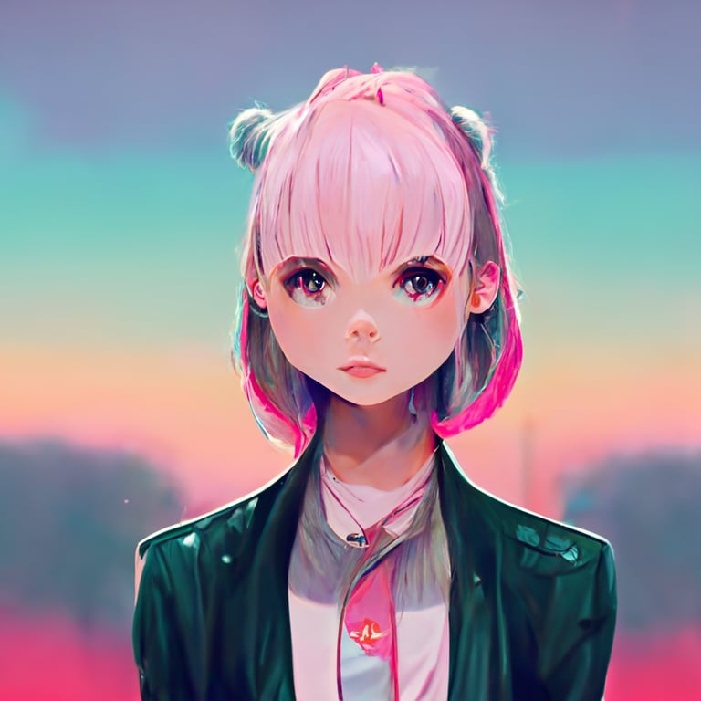 Prompthunt Anime Japan Anime Vtuber Virtual Youtuber Standing Kawaii Girl Pink Ponytail Hair Jacket Illustration High Resolution